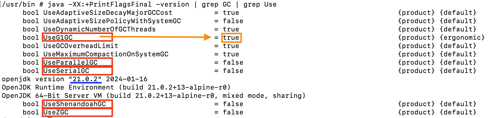 현재 Default 로 적용된 GC를 확인하는 방법은 크게 2가지로 다음과 같습니다.