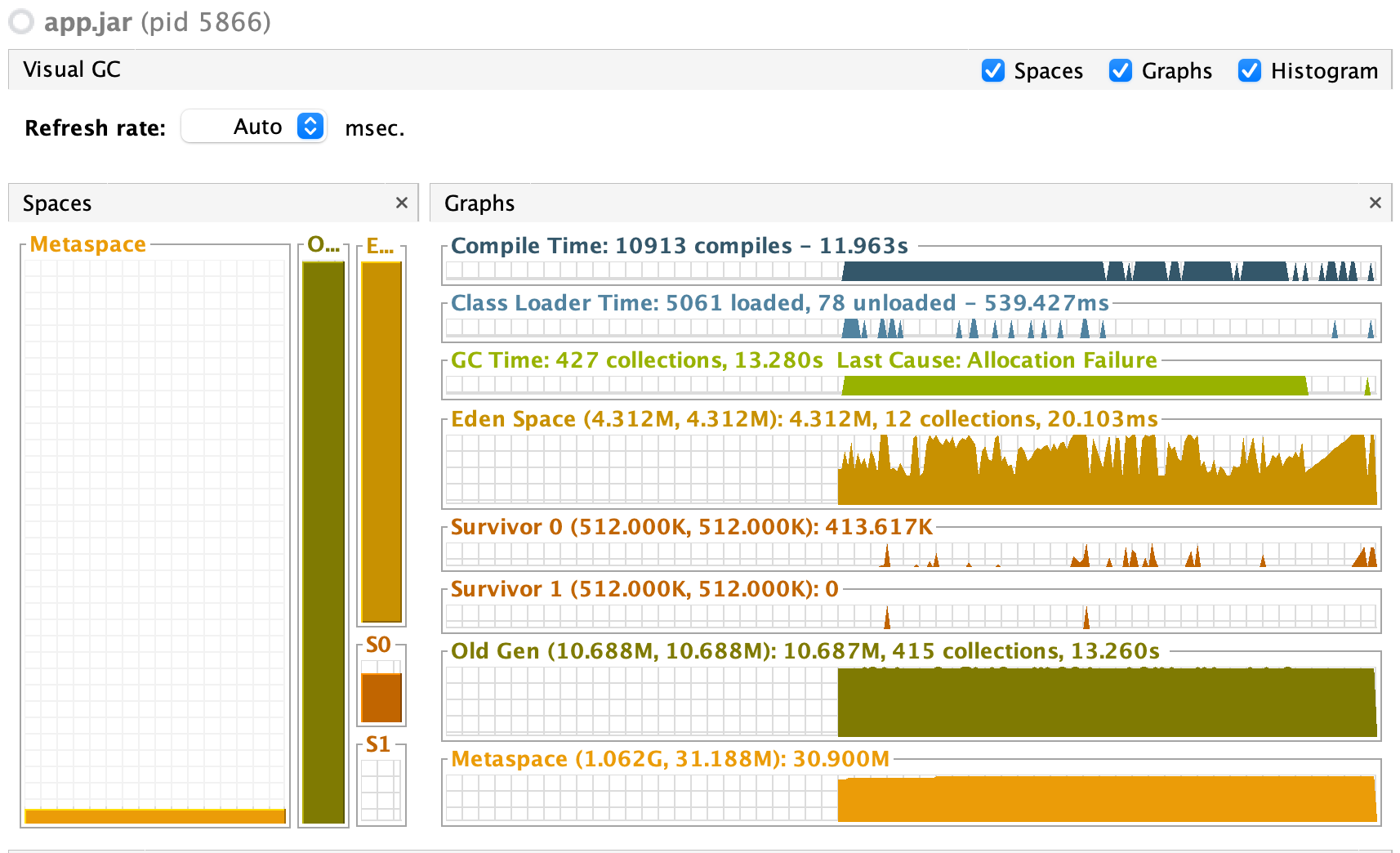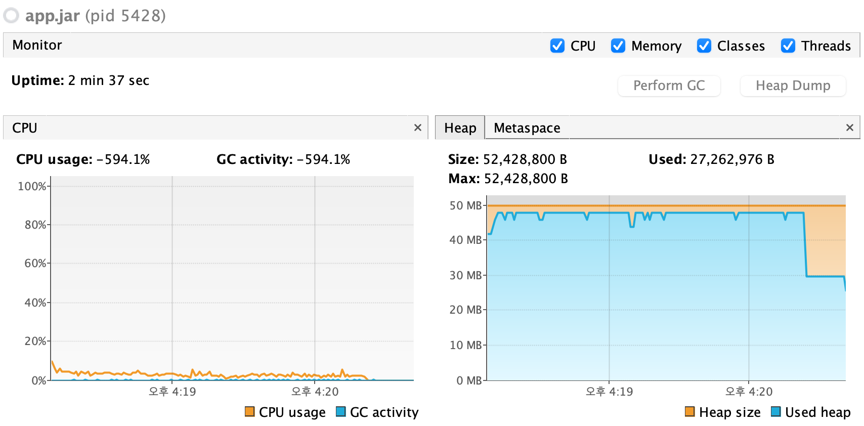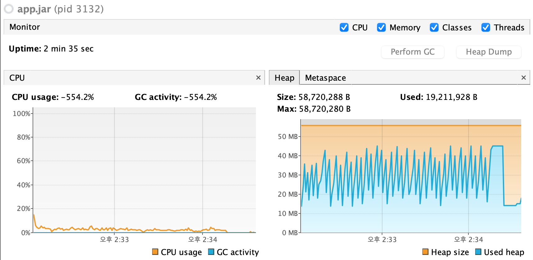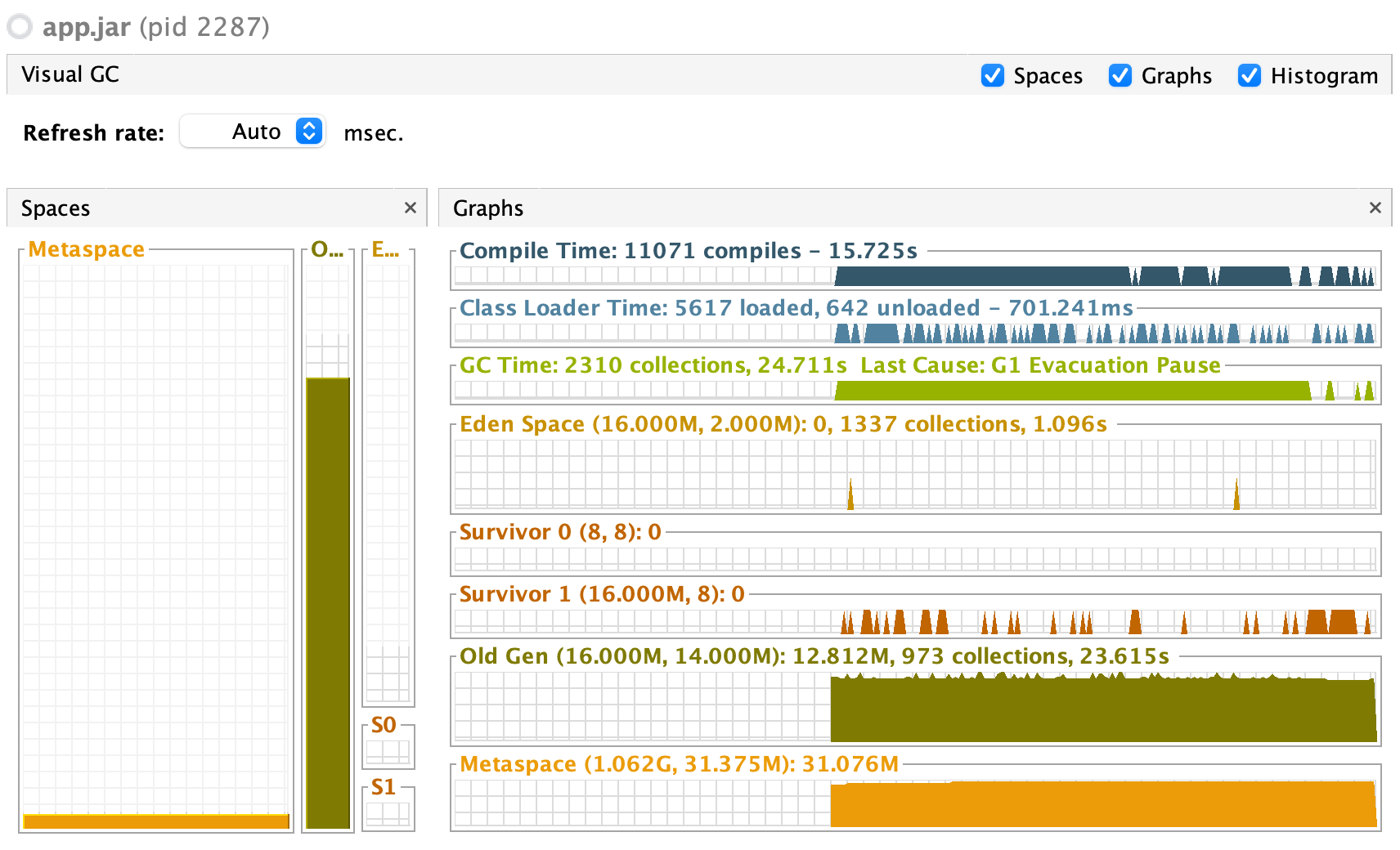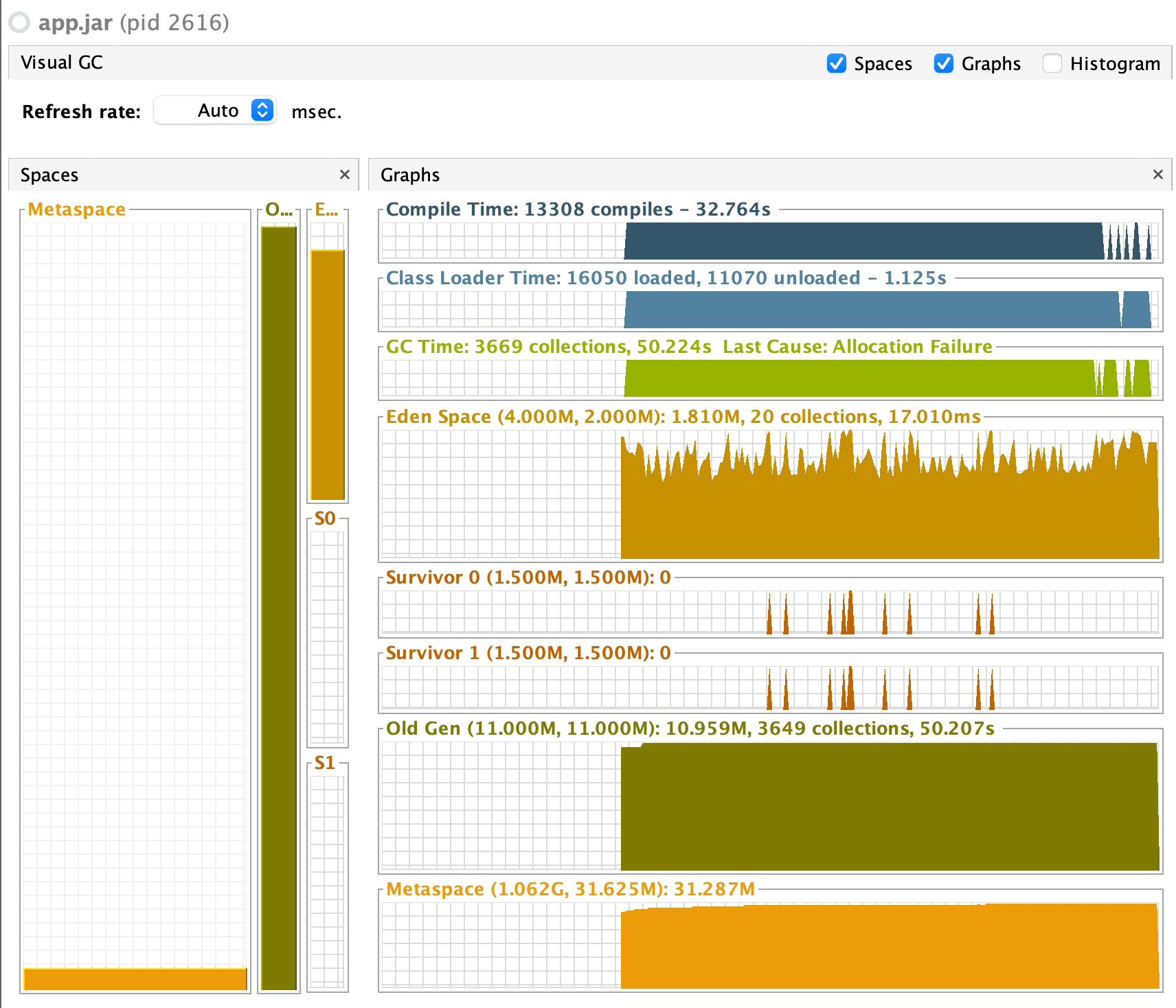 테스트 환경은 Java17에 OpenJDK 이며 모니터링으로는 VisualVM + VisualGC 와 jstat을 사용하였습니다.
